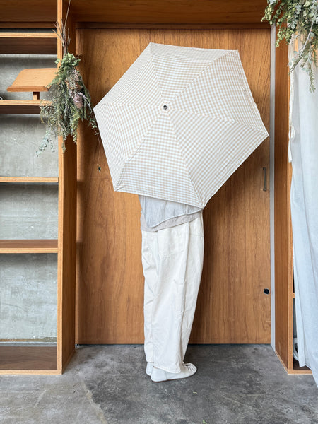 軽くてザビにくい素材を使用した、晴雨兼用の折り畳み傘です。骨組みを折らなくてもワンアクションで開閉が可能。傘が裏返っても折れにくく、持ち手の房は腕やベビーカーのハンドル等に掛けれます。傘袋は口元が大きく傘が出し入れしやすく、ミニバックとしても使えます。